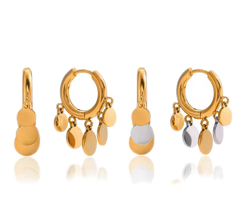 18k Gold Plated Stainless Steel Tassel Hoops - Duo tone