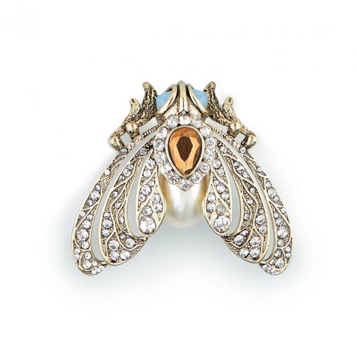 Adorn your coat, blazer or crisp white shirt with this beautiful 18ct gold plated statement brooch. Designed to draw the eye—this art-deco moth is rich in detail, combining opulent sparkle with hand-set crystals & simulated pearls, and antique styling. Ideal for elevating jackets, scarves or lapels with a bold, elegant accent.