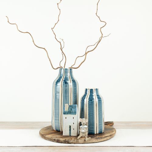 Blue Striped Bottle Vase, 30.5cm