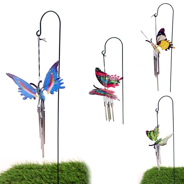 Bring the garden to life with these four assorted charming butterfly windchimes, each perched on a 60cm hook. As the breeze stirs, their spring-mounted wings flutter playfully while the chimes fill the air with delightful music.
