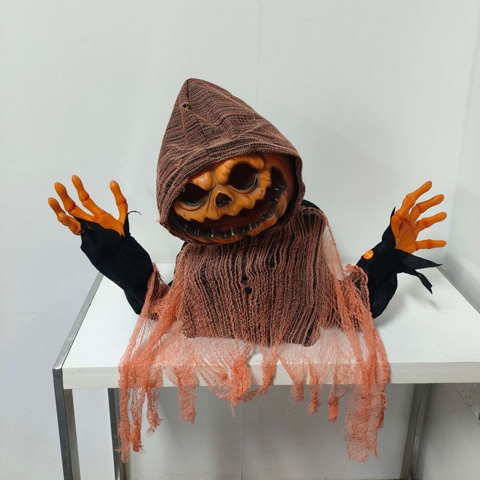 A must-have for Halloween décor, this scary pumpkin man appears to be breaking through the ground from his grave—moving, shaking and glowing in the process.