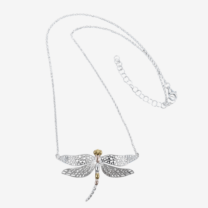 - Sterling silver and 18ct Gold plate detail Dragonfly necklace