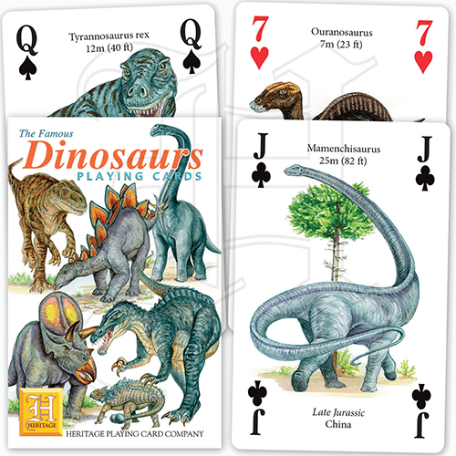 A fascinating pack of illustrated playing cards portraying a wide range of dinosaurs......including Tyrannosaurus Rex, Diplodocus, Triceratops. Many were huge and some no bigger than a large dog!