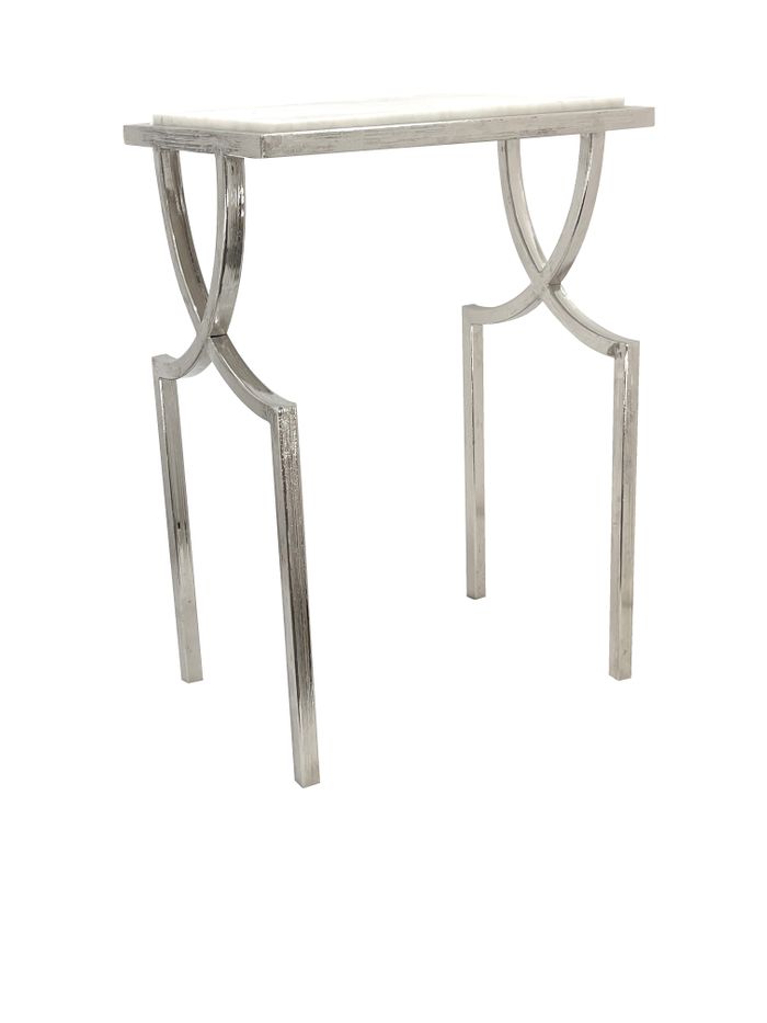 Warm SIlver Martini Table with a White Marble top from our Odyssey Collection.