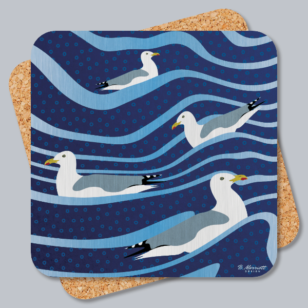 Part of the British birds and wildlife range from contemporary artist Ben Marriott, this premium coaster features a flock of gulls riding the ocean waves.