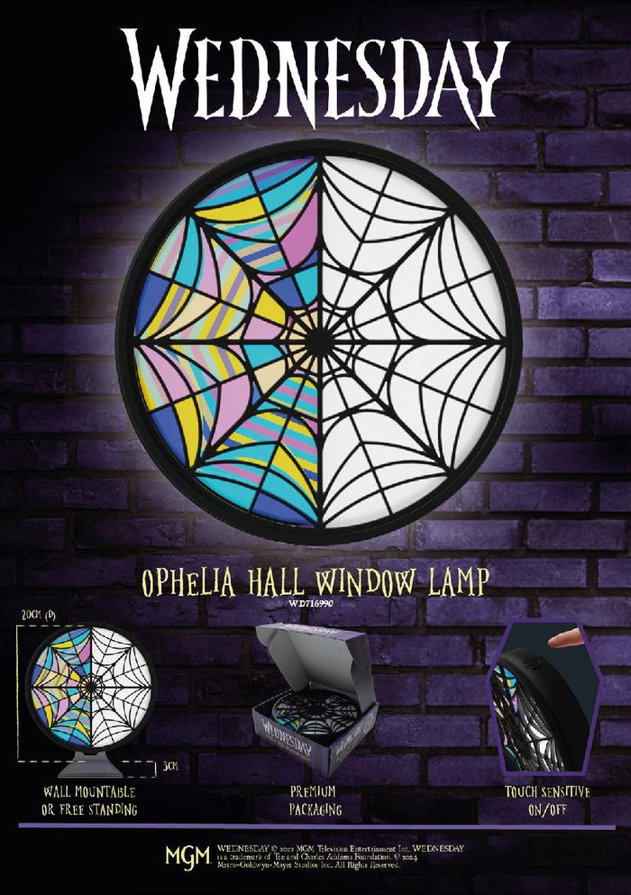 Must have for all Wednesday fans out there! Battery and USB C Powered novelty lamp. Can be wall mounted or using the supplied stand. The lamp is swtiched on by a touch sensative button, and creates a fantastic lighting effect true to the block busteTV series.