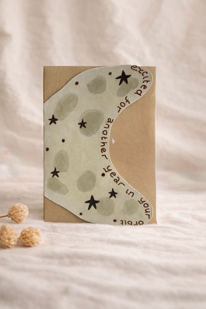 5 × 7 in. greeting card printed on FSC-certified recycled luxury cardstock. Supplied with a natural brown kraft envelope.