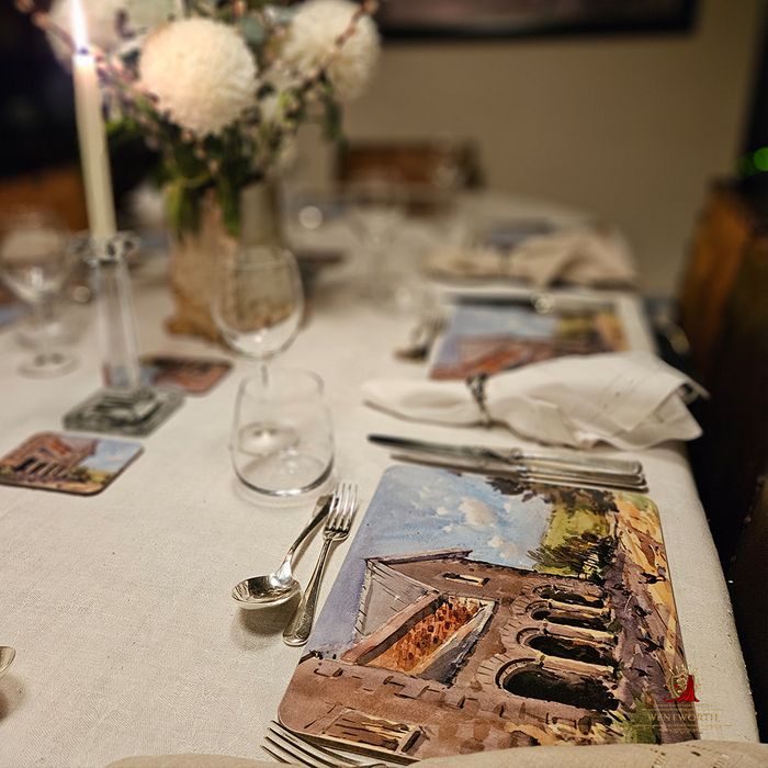 A stunning table-setting is always appreicated, these beautiful mats featuring watercolour paintings of the English countryside create a talking point among guests.