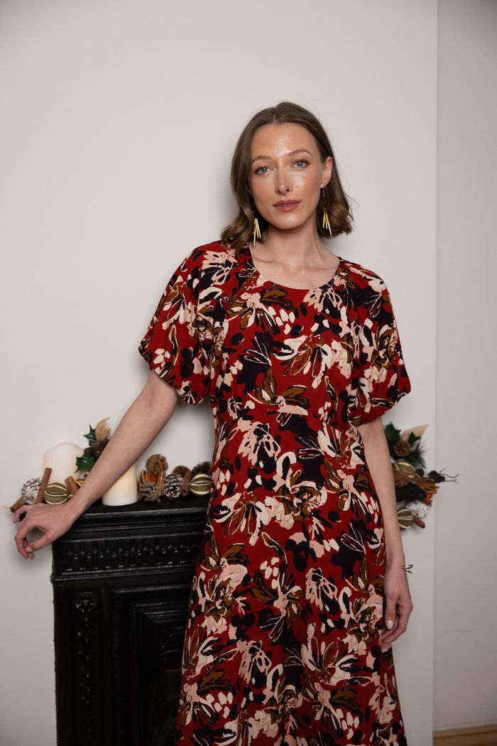 Beautifully designed and exclusive print, this painterly floral dress is made of 100% Heavy Viscose