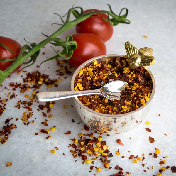 A beautiful bowl adorned with a decorative gold honey bee design with a stunning hammered finish; perfect for serving up honey, jams, creams, sauces and many other things. Accompanied with a spoon to make the perfect pair. A lovely addition to any breakfast or brunch table.