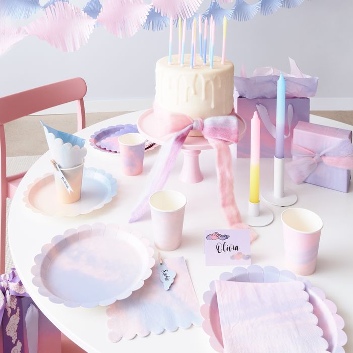 For further great accents on the party table, we offer dip dye or rainbow-designed taper and cake candles.