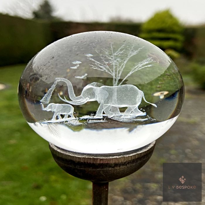 Stunning 3D crystal ball decorative garden stake, multiple finishes.