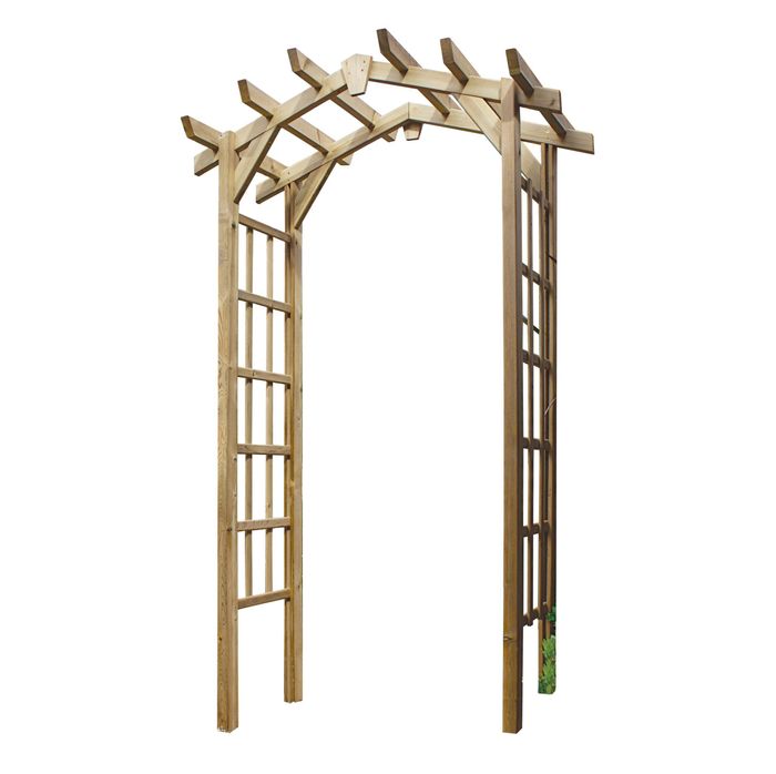 Classic wooden garden arch suitable for pathways and entrances.