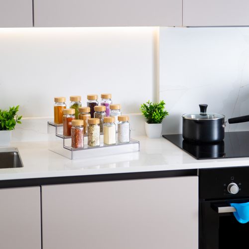Three-tier and four-tier options to suit any cupboard or shelf. Available in expandable width for a ...