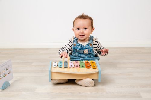 This wooden musical toy combines a colorful xylophone and piano-style keys. Featuring two hammers, m ...