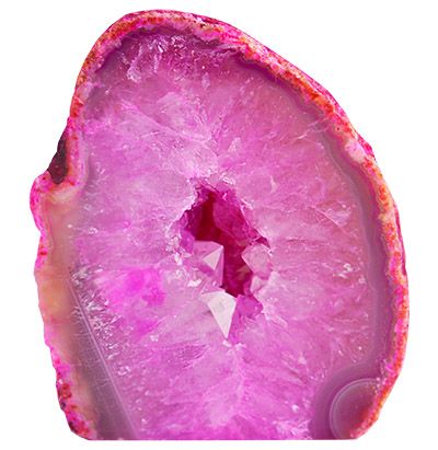 These agate geodes have been cut, polished and then dyed to accentuate the natural patterns within. ...