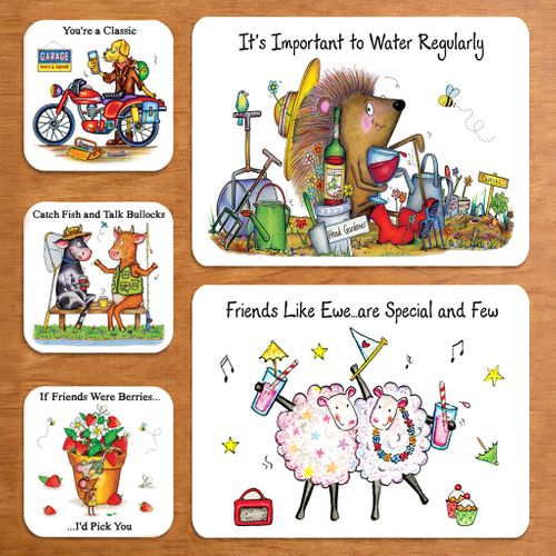 Growing range of designs, highly collectible. Cork backed individual matts and coasters, with a wipe ...