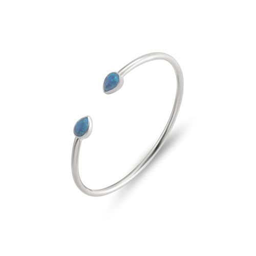 Teardrop Opal Open Bangle, is hand made from highly polished 925 sterling silver, featuring 2 8x6 mm ...