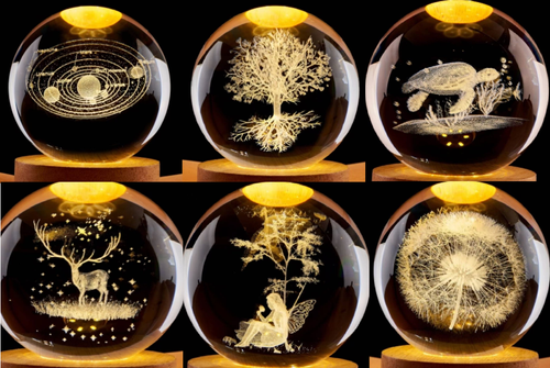 USB mains powered solid glass globes mounted onto an LED light source base , great detail in the des ...