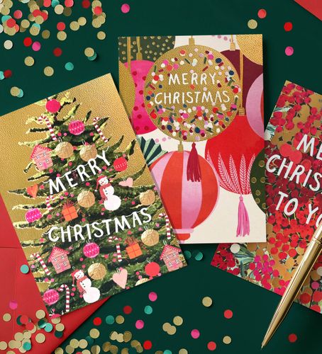 Our new Christmas range brings together colourful hand-painted illustrations of festive baubles, Chr ...