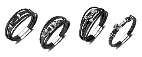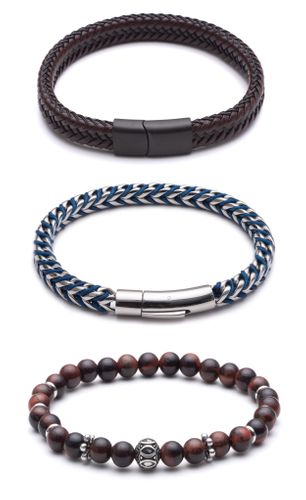 Range of stainless steel vegan (faux) leather bracelets Real stone bead and stainless steel bracele ...