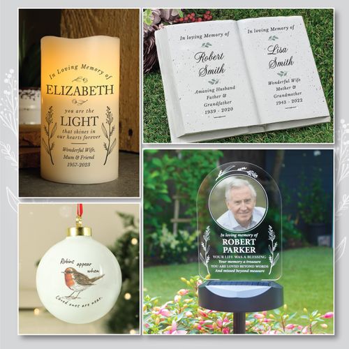 Commemorate a loved one with our wide range of personalised memorial gifts. From graveside and garde ...