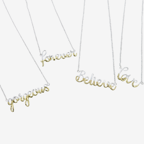 Spread a little happiness with our super cute Believe Script Necklace! Believe is written in a beaut ...