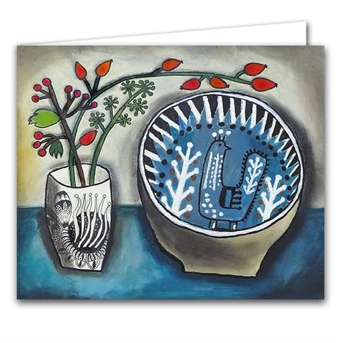 'BBird Dish and Hedgerow Posy' by Susan Gathercole, greeting card published by Silver Birch Cards