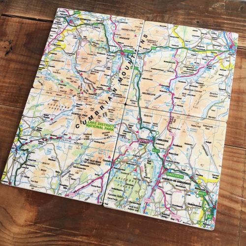 Beautiful 4 wooden coasters - Personalised to your area. Join the 4 coasters together to make a larg ...