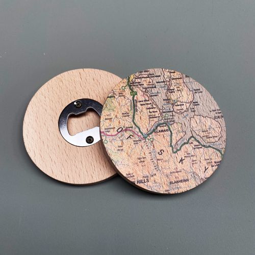Wooden bottle openers. Can be printed with map of area or text/design of choice. Two sizes - a coast ...