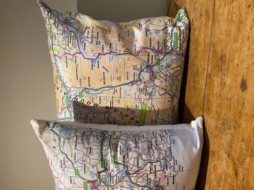 A range of material gifts : cushions, tea towels, wash bags and lampshades. Can be printed with map ...