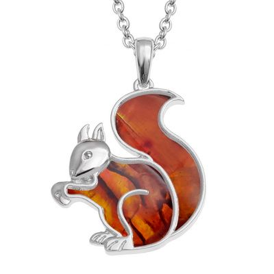 Red squirrel design inlaid with orange Paua shell, pendant is on a trace chain. Supplied in a Tide ...