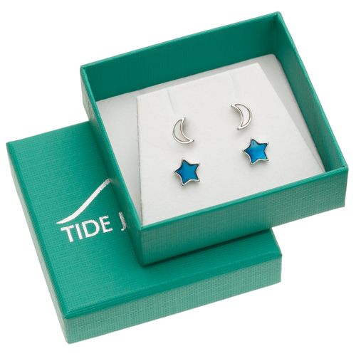 Moons & stars stud earrings Set of two pairs Inlaid mother of pearl shell in the moons & blue mother ...