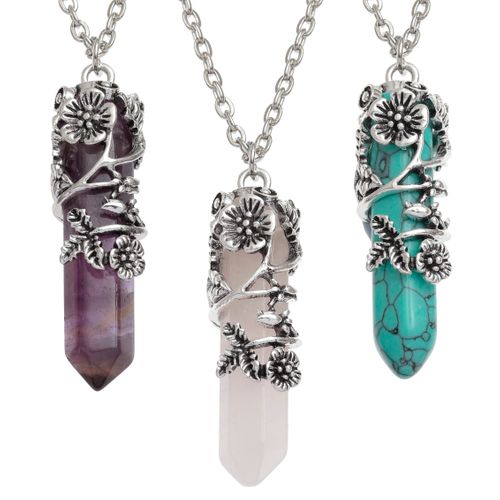 Floral style wraparound metal setting with semi-precious point supplied on chain Length 22" + 2" ext ...