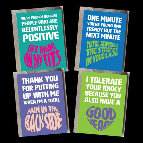 Quirky A6-sized cards offering a stylish, typography-inspired way to say exactly what you mean.